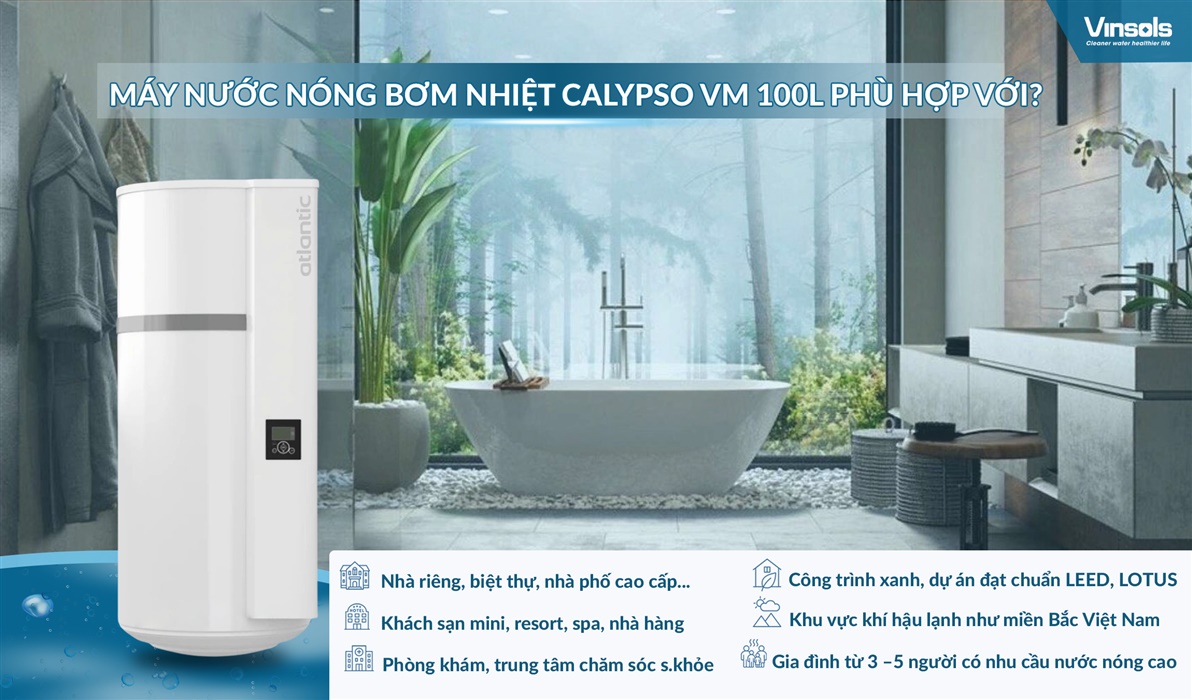 Máy Nước Nóng Calypso VM dung tích 100 lít là giải pháp nước nóng trung tâm lý tưởng, phù hợp với đa dạng loại hình nhà ở và đối tượng khách hàng, đặc biệt là những ai tìm kiếm giải pháp nước nóng an toàn cho gia đình và đầu tư thông minh cho không gian sống: