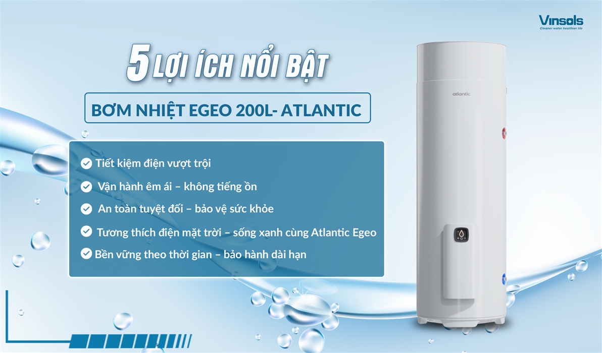 Máy Bơm Nhiệt EGEO 200L - Atlantic với dung tích 200 Lít là một giải pháp nước nóng trung tâm lý tưởng, phù hợp với nhiều loại hình nhà ở và đối tượng khách hàng khác nhau: