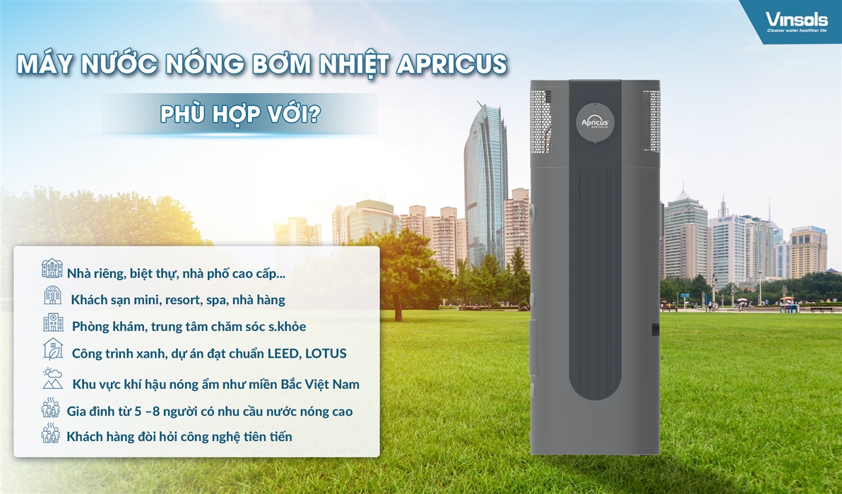 Apricus là thương hiệu đến từ Úc, nổi tiếng với các giải pháp máy nước nóng công nghệ Úc sử dụng năng lượng sạch. Thành lập từ năm 2005, Apricus chuyên cung cấp hệ thống nước nóng trung tâm bằng năng lượng mặt trời và bơm nhiệt. Dòng sản phẩm heat pump Apricus All In One như model APHP-R290-260 được đánh giá cao nhờ hiệu suất vượt trội, thiết kế tích hợp thông minh và khả năng tiết kiệm điện tối ưu.