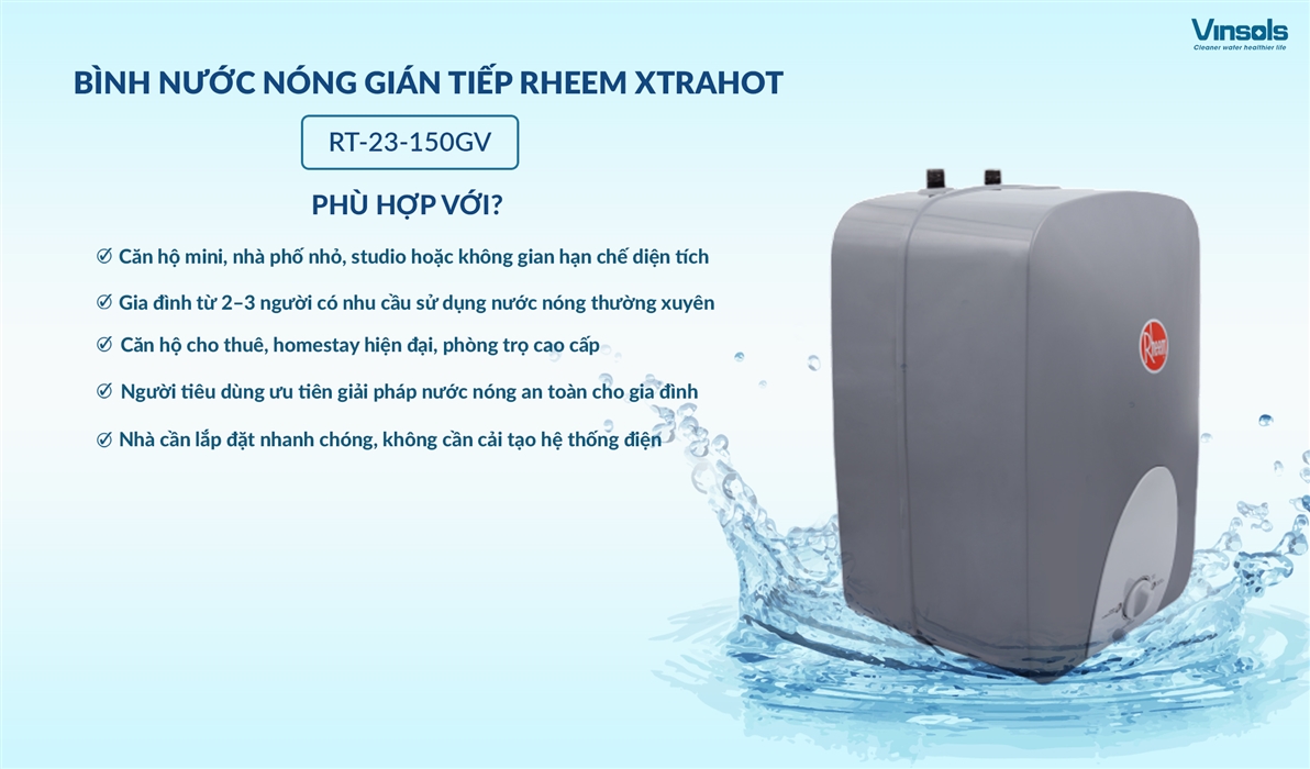 Đặt mua ngay Bình nước nóng Rheem XtraHOT RT-23-150GV chính hãng tại Vinsols – phân phối toàn quốc, hỗ trợ lắp đặt tận nơi, bảo hành dài hạn, an tâm sử dụng!