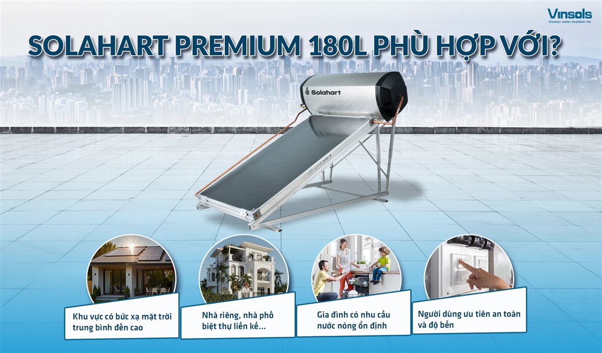 Máy nước nóng trung tâm Solahart Premium 180L là lựa chọn lý tưởng cho các hộ gia đình từ 4–6 người, đặc biệt phù hợp với: