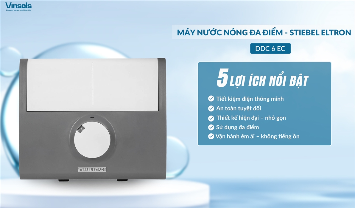 Đầu tư thông minh cho không gian sống cùng máy nước nóng tiết kiệm điện Stiebel Eltron DDC 6 EC – Giải pháp nước nóng hiện đại, an toàn và tiện nghi cho gia đình bạn.