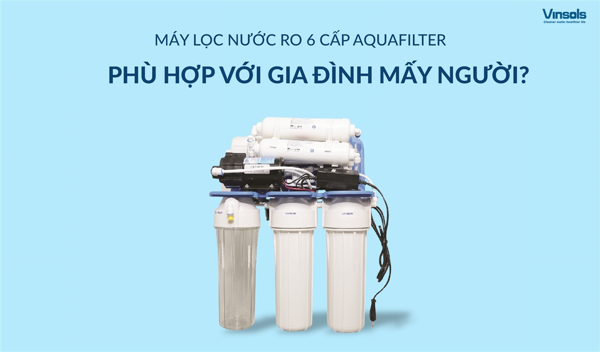Theo khảo sát từ Vinsols, hơn 80% khách hàng sử dụng máy RO Aquafilter 6 cấp cho gia đình từ 3–5 người đều hài lòng với hiệu suất lọc và độ bền của máy. Trung bình mỗi hộ gia đình sử dụng khoảng 1 khối nước/tháng cho nhu cầu ăn uống – lượng nước thải từ máy RO rất thấp và có thể tái sử dụng.