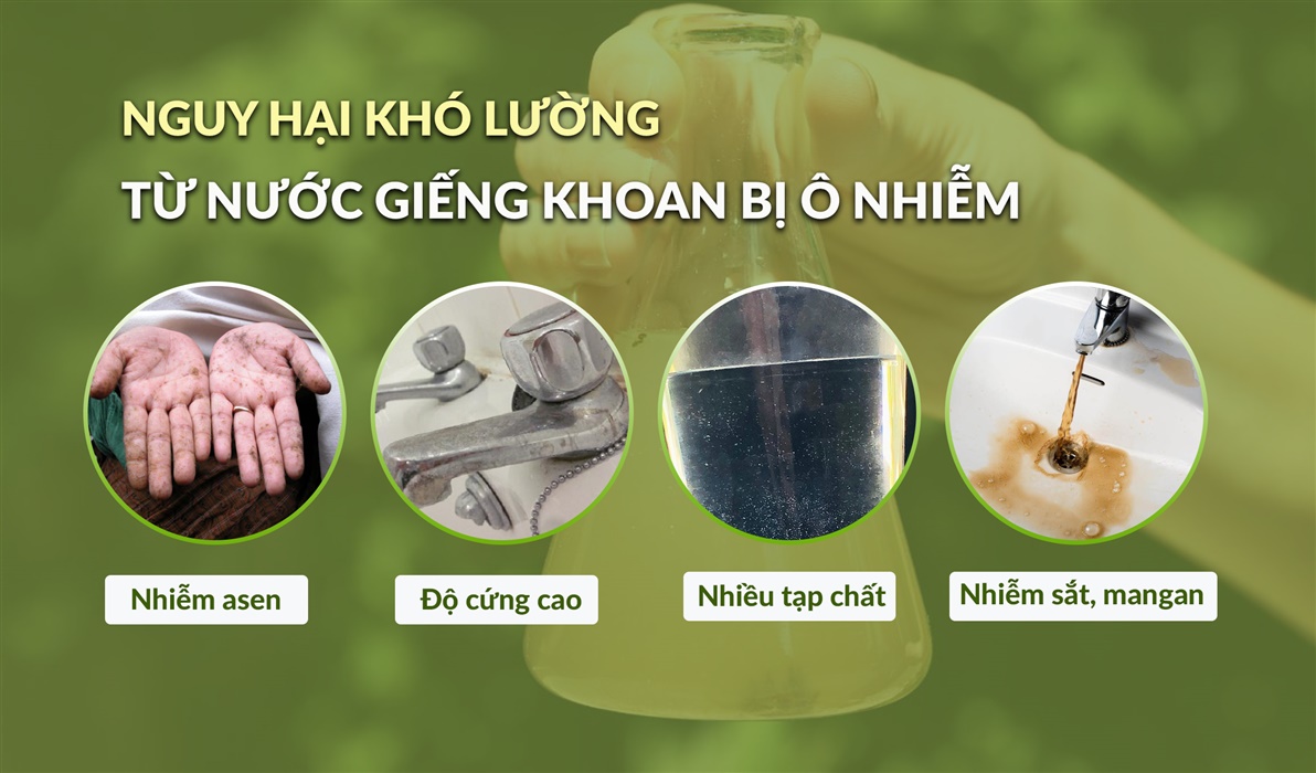 Thực tế, nước giếng khoan tại Việt Nam thường xuyên đối mặt với: